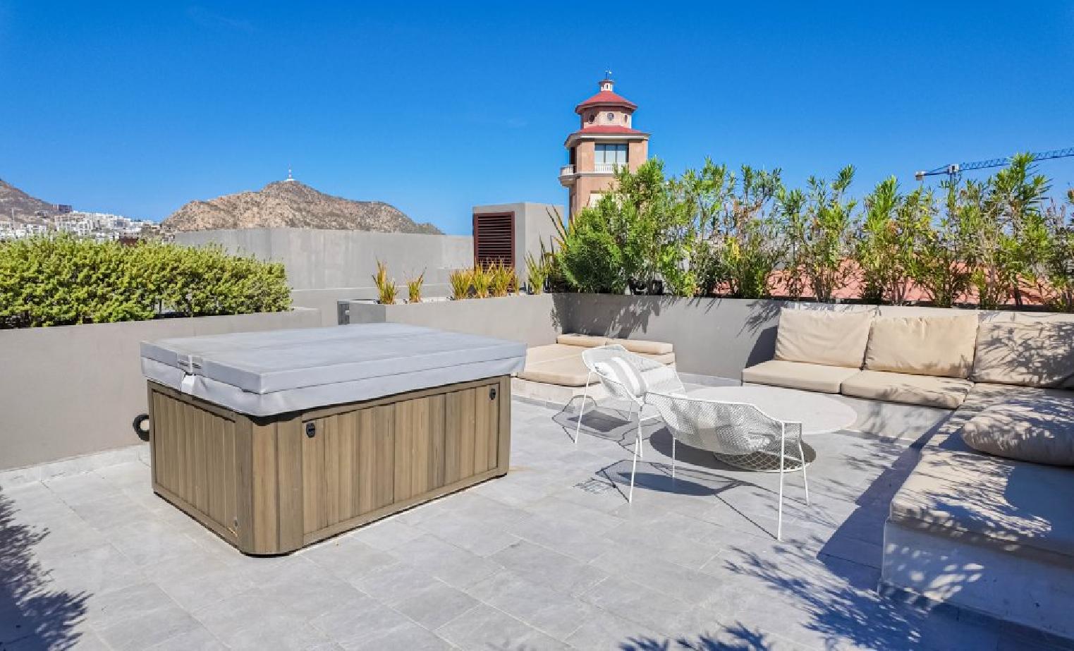 Welcome to your Cabo retreat! This stunning home at The Paraiso Residences is flooded with natural light. The kitchen and living areas are surrounded by floor to ceiling windows with one wall of windows that opens completely to the patio and spans the entire length of the kitchen and living room. This is the brightest and lightest 2 bedroom unit in the whole complex. Designed for effortless living, the unit features 2 spacious bedrooms with en suite bathrooms. Meticulously maintained, this home is offered turn-key, complete with an updated furniture package, a fully equipped kitchen, and everything you need to just arrive and enjoy. The highlight is your completely private rooftop terrace with jacuzzi, the perfect spot to unwind while soaking in Cabo’s famous sunsets. Perfectly positioned in the heart of Cabo San Lucas, this residence boasts an unbeatable location right on the marina, steps away from luxury shopping, world-class dining, and endless entertainment. Parking is included on a private level of the garage that is for Residence Owners and their guests only and is gated with full time security. For investors, this unit represents an excellent income opportunity with proven vacation rental demand. Rental history can be provided to showcase the additional revenue potential.